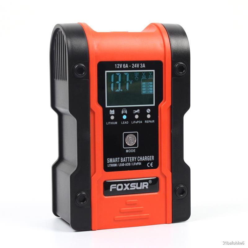 Foxsur 12v 24v 6a Automatic Smart Battery Charger 7 Stage Car Battery Charger For Gel Wet Agm 12 6v Lithium Lifepo4 Li Shopee Thailand